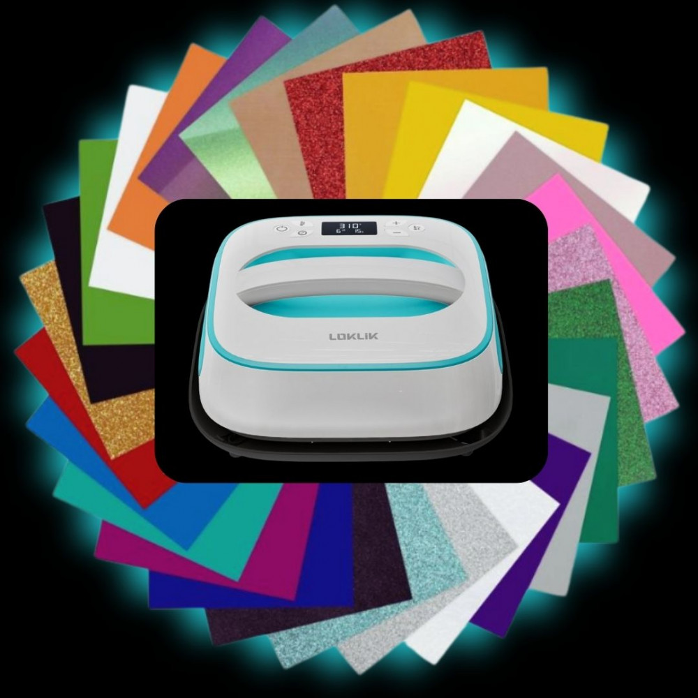 LOKLiK Easy Heat Press™ Transferpresse 25,5 x 25,5 cm + + LOKLiK Flexfolien Bundle A4