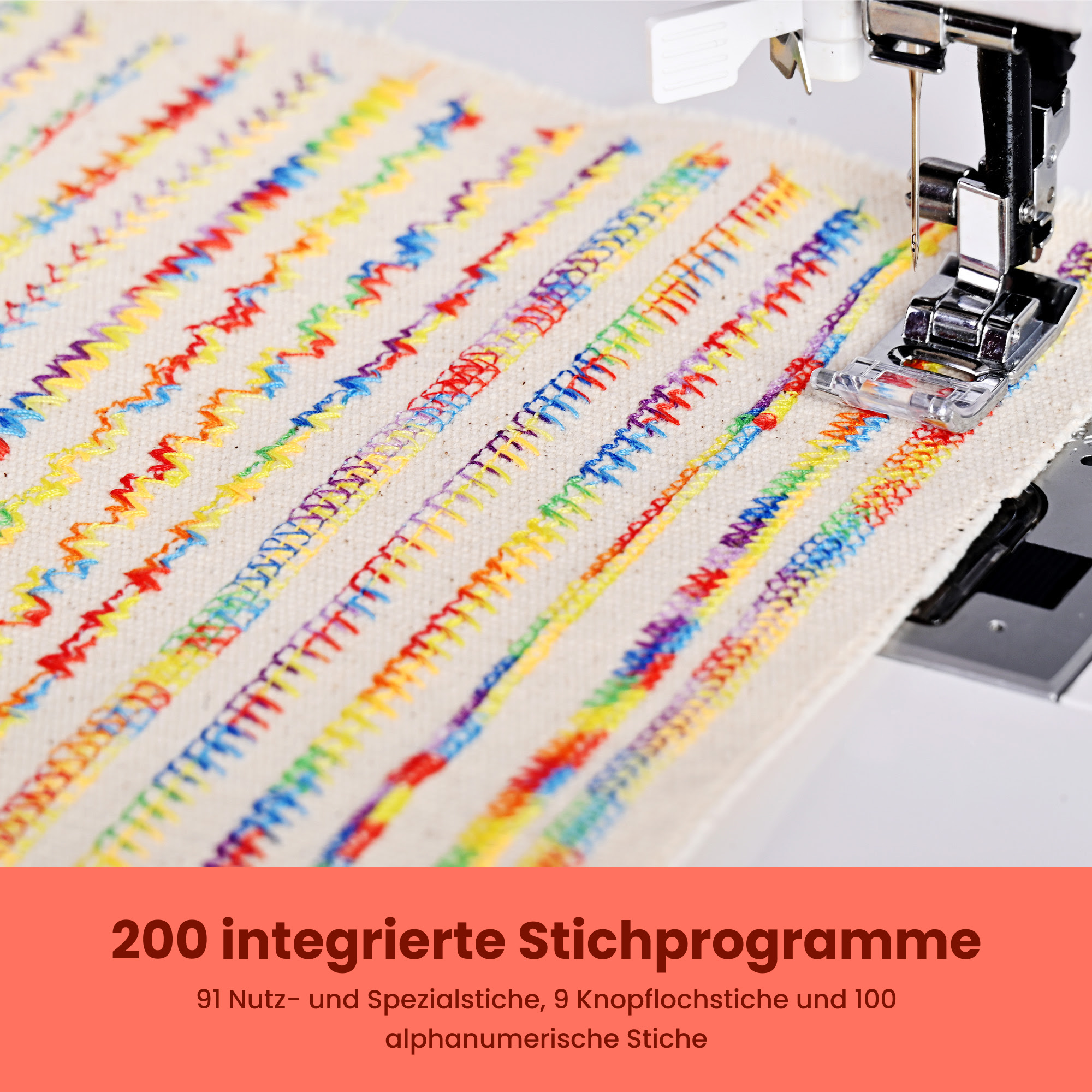 - 200 vorinstallierte Stichmuster für vielseitige Näharbeiten