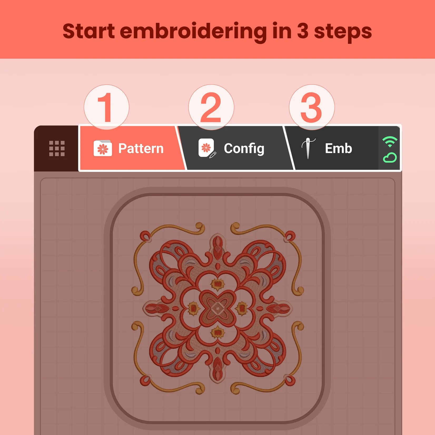 Dank WLAN oder USB kannst du eigene Designs im DST- oder DSB-Format übertragen. Die mitgelieferte Software Institch Cloud gibt dir maximale Gestaltungsfreiheit für Logos, Monogramme oder individuelle Grafiken.