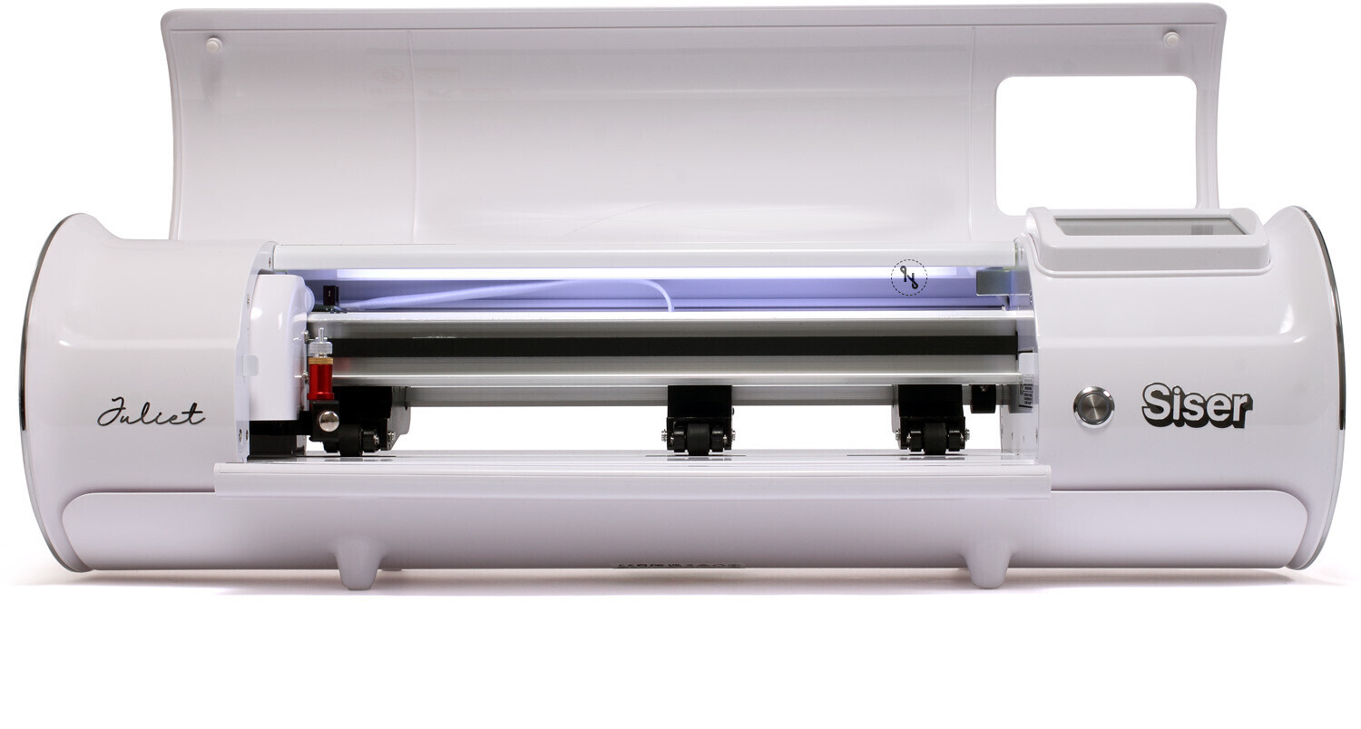 Siser Juliet ist ein High-Definition-Schneideplotter, zum Schneiden feinster Details aus einer Vielzahl unterschiedlichster Materialien. Juliet wurde für alle Siser Transferfolien, die sich mit den bereits vorgespeicherten Einstellungen perfekt schneiden lassen. Aber natürlich funktioniert es auch hervorragend mit anderen Materialien wie z. Bsp. Karton, Stickern, Bastelschaum und vielen mehr. Die enthaltene Schneidematte ist für Materialien bis zu 30cm Breite geeignet, ohne Matte lassen sich auch längere Rollen schneiden, wenn die Rollenhalterung benutzt wird. Mit Juliet haben Sie die Freiheit, an jedem Tag Ihre Ideen, nach Ihren eigenen Vorstellungen und mit den Materialien umzusetzen. Verabschieden Sie sich von lauten Motoren und schrecklich lauten Schleifgeräuschen, die einige Plotter verursachen. Juliet läuft leise und ruhig und ist perfekt geeignet um zu schneiden, während Sie Ihre Lieblingssendung sehen oder wenn die Kinder fest schlafen!