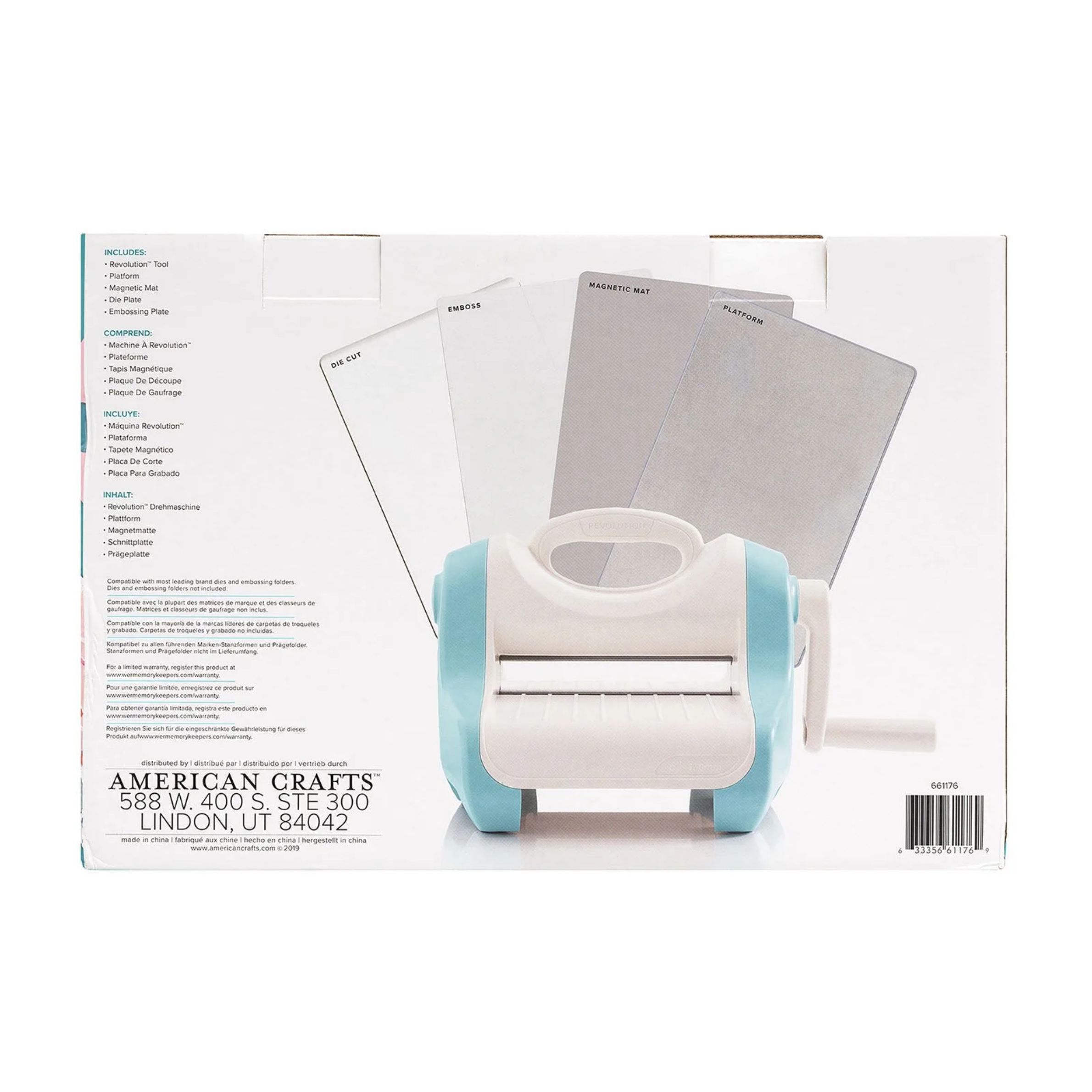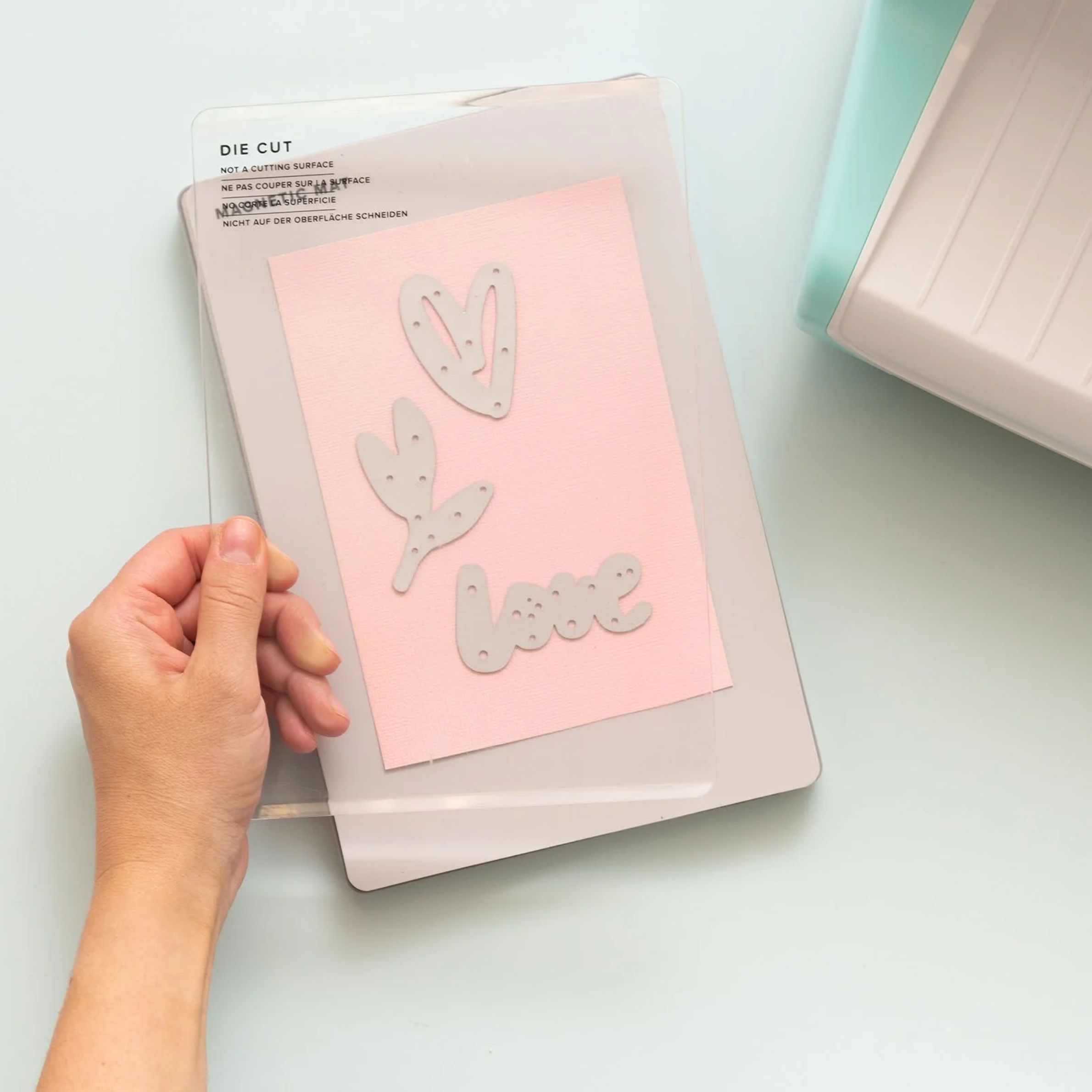 Die Revolution Stanz- und Prägemaschine ist eine kompakte Maschine zum Prägen und Stanzen. Die magnetische Matte hält die Stanzen sicher an Ort und Stelle und sorgt so für eine perfekte Platzierung. Durch die transparente Stanz- und Prägeplatte ist jederzeit sichtbar, ob die Formen richtig positioniert sind und korrekt aus der Maschine laufen.